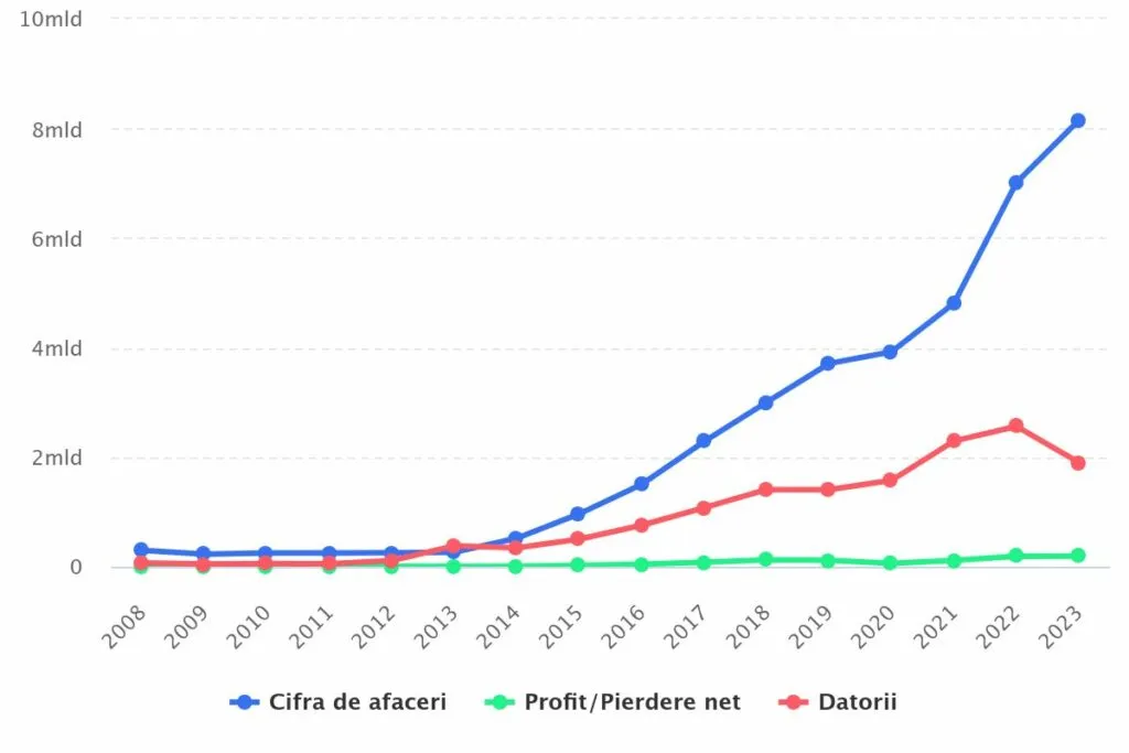 Robert Bosch SRL din București a raportat pentru 2023 o cifră de afaceri de 8,15 miliarde de lei, cu 16% mai mult decât în anul precedent. În 2022, cifra de afaceri a fost de 7,14 miliarde de lei. Astfel, s-a înregistrat o creștere de aproape un miliard de lei de la an la an, între 2023 și 2022. Robert Bosch SRL a înregistrat un nou record în ceea ce privește cifra de afaceri anuală în 2023.