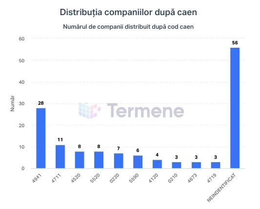 - 28 de firme - face „transporturi rutiere de mărfuri” (cod CAEN 4941);
