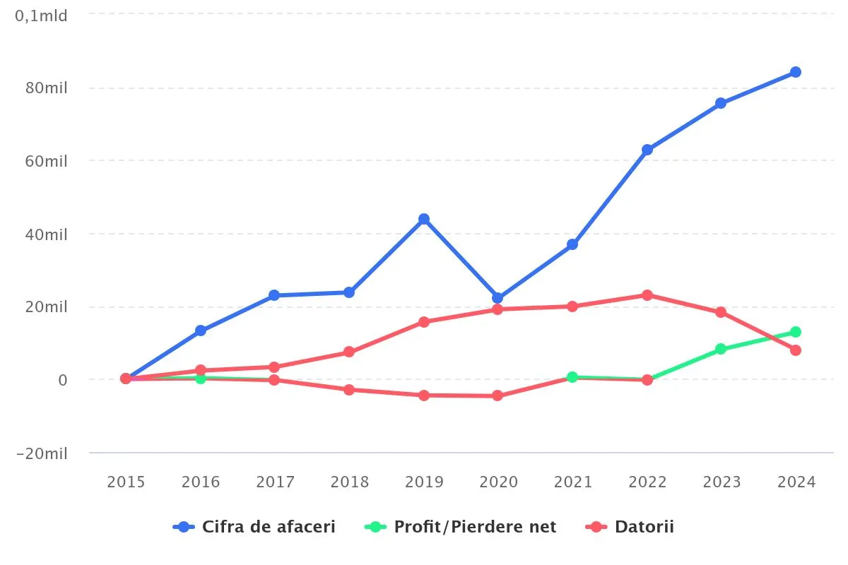 În 2024, compania a raportat o cifră de afaceri de 84,14 milioane de lei, în creștere cu 11% față de 2023 (75,64 milioane de lei). Creșterea este semnificativă având în vedere că vorbim de un volum mare, ceea ce arată consolidarea businessului, nu doar o revenire după pandemie.