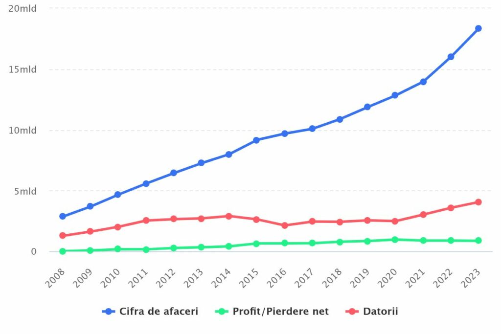 În 2008, cifra de afaceri a fost de 2,8 miliarde de lei. În 2017, s-a trecut de pragul de 10 miliarde de lei. Din 2021, cifra de afaceri crește de la an la an cu minimum 2 miliarde de lei.