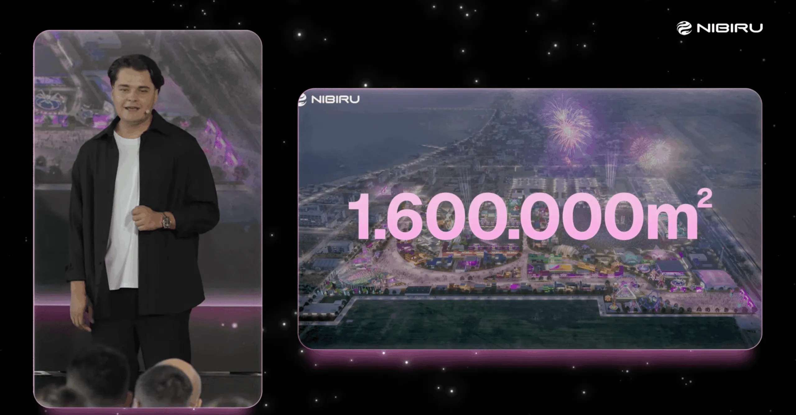 Stațiunea Nibiru va cuprinde un venue de evenimente cu o capacitate de 150.000 de persoane, unul dintre cele mai mari din lume, un mall uriaș în aer liber, un parc de distracții și un club de noapte cu o capacitate de 30.000 de persoane, despre care Selly spune că va fi cel mai mare din lume.