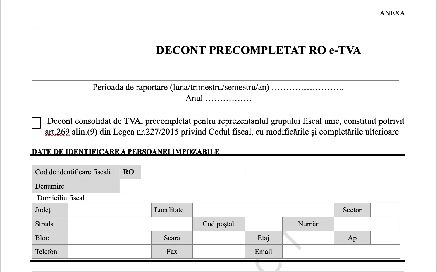 Ordin pentru modificarea anexei la Ordinul presedintelui Agentiei Nationale de Administrare Fiscala nr. 3775/2024 pentru aprobarea modelului si continutului formularului „Decont precompletat RO e-TVA”