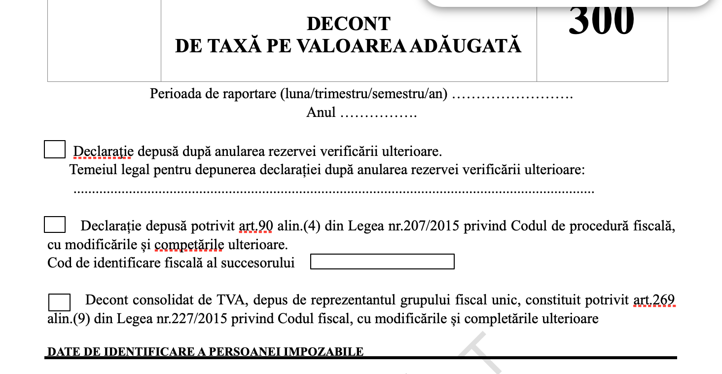 - un nou model și conținut al formularului (300) – „Decont de taxă pe valoarea adăugată”;