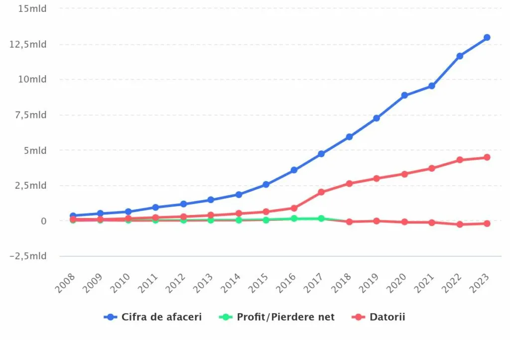 Profi Food Rom SRL din Timișoara a raportat pentru anul trecut o cifră de afaceri de 12,92 miliarde de lei, cu 10% mai mult decât în anul precedent, 2022. Compania a înregistrat astfel un nou record în ceea ce privește cifra de afaceri anuală. Asta după ce, în 2022, cifra de afaceri a fost de 11,6 miliarde de lei. S-a înregistrat astfel o creștere de aproape 1,3 miliarde de lei de la an la an, între 2023 și 2022.
