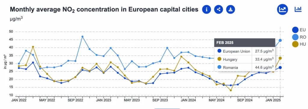 Ungaria a avut un aer mai curat în februarie. Calitatea aerului din România este de două ori mai proastă decât media UE.