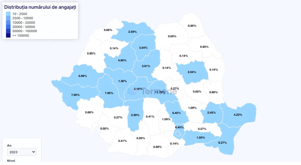 În schimb, sunt 22 de județe care au sub 10 angajați sau niciunul. În categoria județelor fără niciun angajat în oierit intră Mehedinți, Olt și Suceava.
