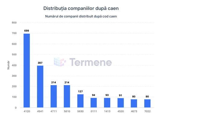 - 699 de firme au obiectul principal de activitate - „lucrări de construcții a clădirilor rezidențiale și nerezidențiale” (cod CAEN 4120).