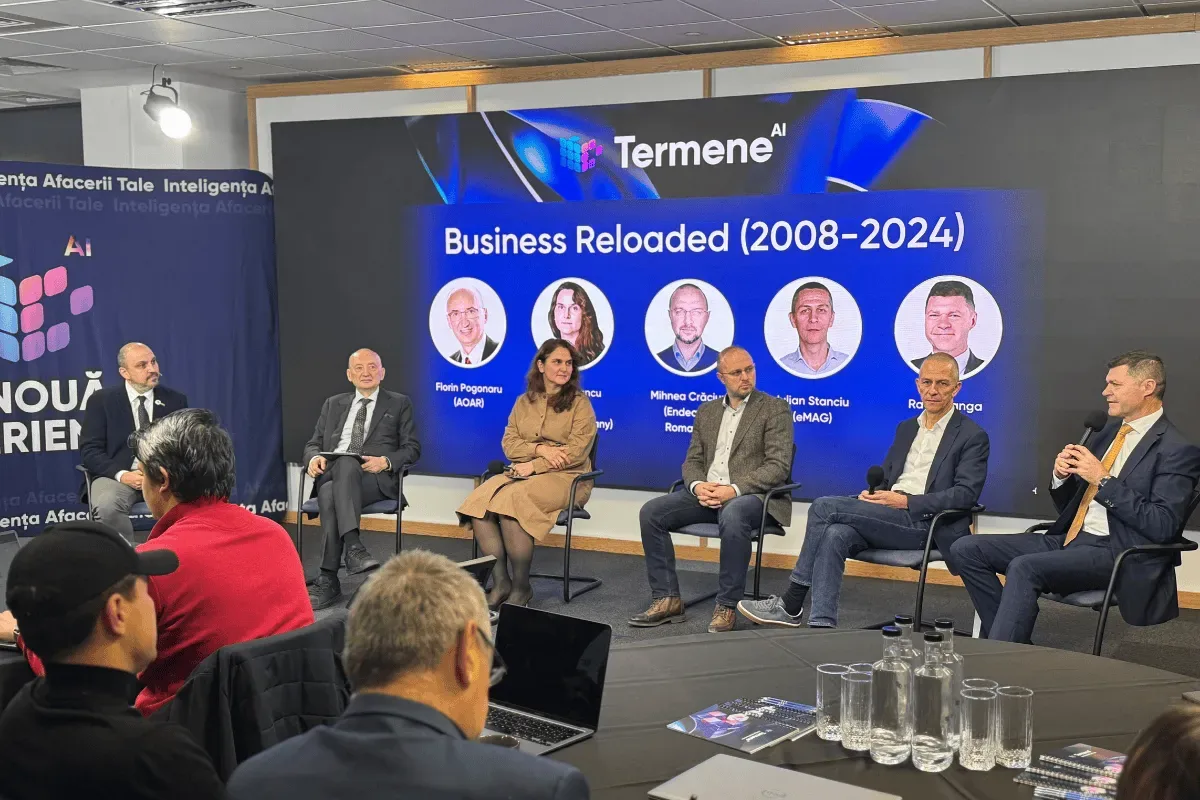 Antreprenorii români trebuie să aibă curaj și să se „arunce". Mediul de afaceri s-a dezvoltat în ciuda politicilor publice. Acestea au fost două dintre concluziile liderilor de business care au participat în noiembrie 2025 la dezbaterea organizată pe marginea studiului Business Reloaded 2008-2024, în fața comunității de business.