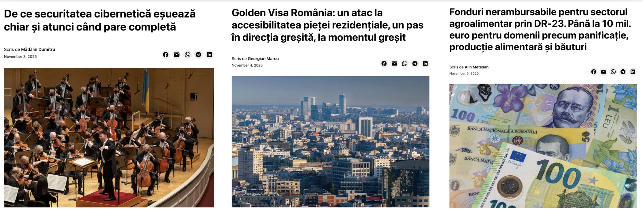 Totodată, platforma a fost deschisă către comunitate și a publicat texte semnate de membri ai comunității de business, precum Mădălin Dumitru, CEO SCUT, Alin Meteșan, fondator ÎnAfaceri.ro sau Georgian Marcu, fondator Green Angels Real Estate.