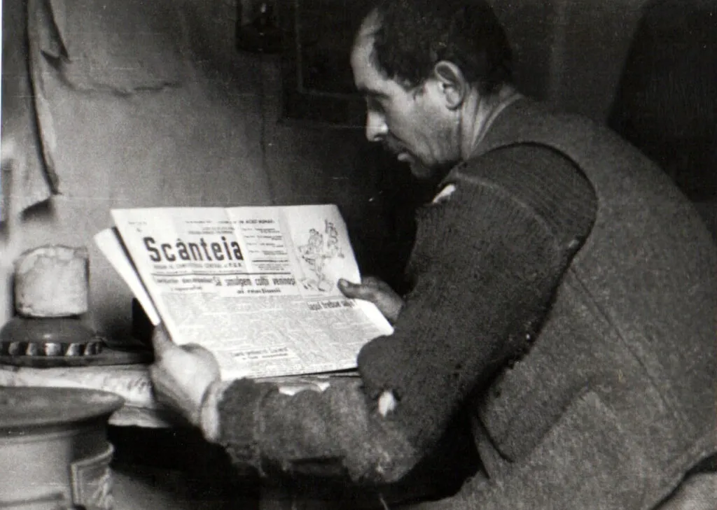 Un miner cititnd ziarul Scânteia 1944, foto: Wikipedia