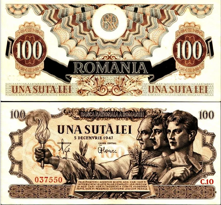 Ultima bancnotă, emisă la 5 decembrie 1947, înainte de instaurarea R.P.R., foto: Wikipedia