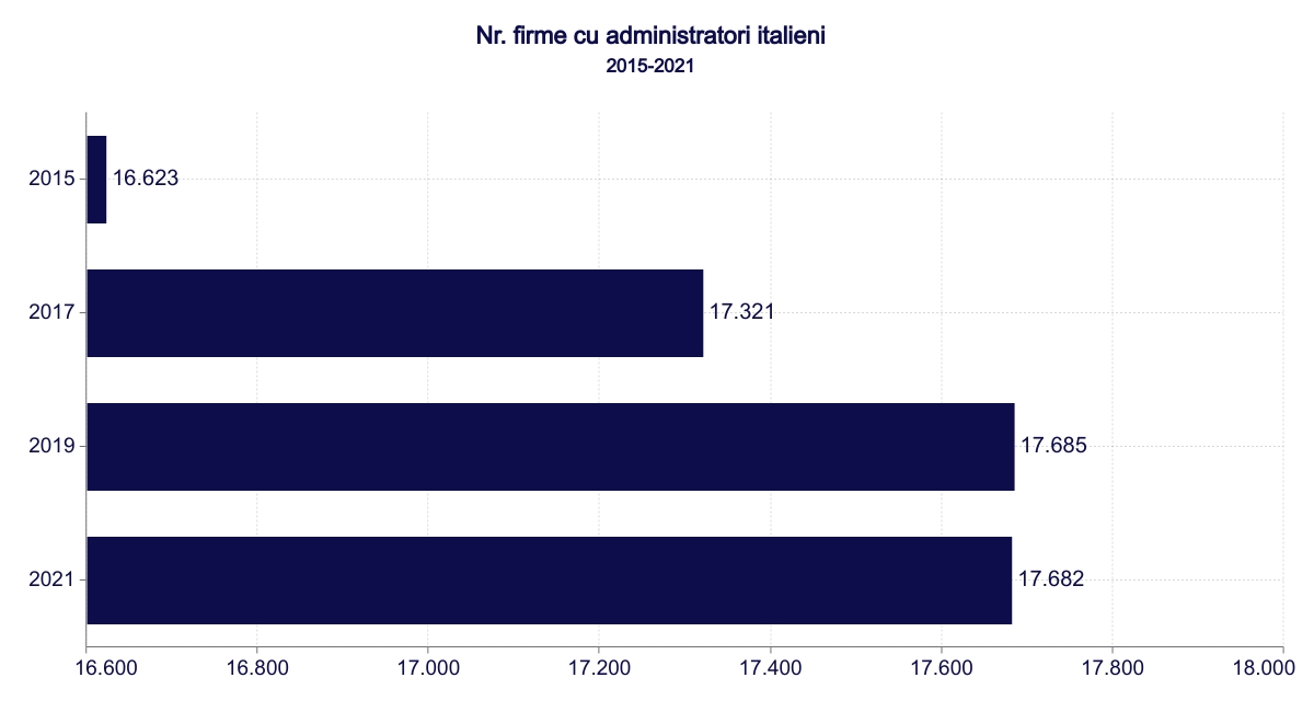 Din 2015 până în 2019, numărul firmelor în care italienii sunt prezenți ca administratori a fost în continuă creștere. În 2021, numărul societăților înregistrează o scădere mică – doar cu 3 firme mai puțin față de 2019.