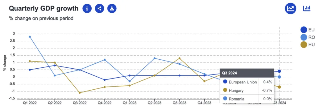 România care a avut parte de o stagnare a PIB-ului propriu, față de Ungaria unde s-a înregistrat o scădere de 0,7%.