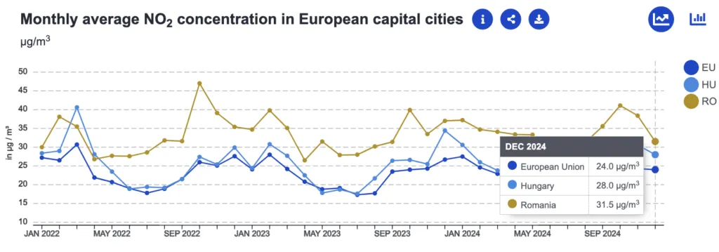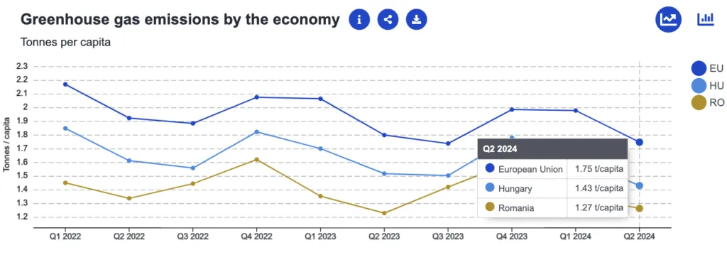 România are aerul mai curat în ceea ce privește gazele de seră emise de producția economică. Cele două state sunt mult sub poluarea din restul statelor membre UE.