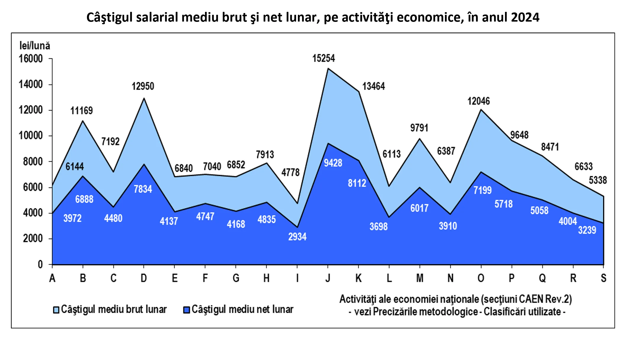 - Zone cu salarii ridicate: București (6.730 lei), Cluj (5.921 lei), Timiș (5.508 lei)