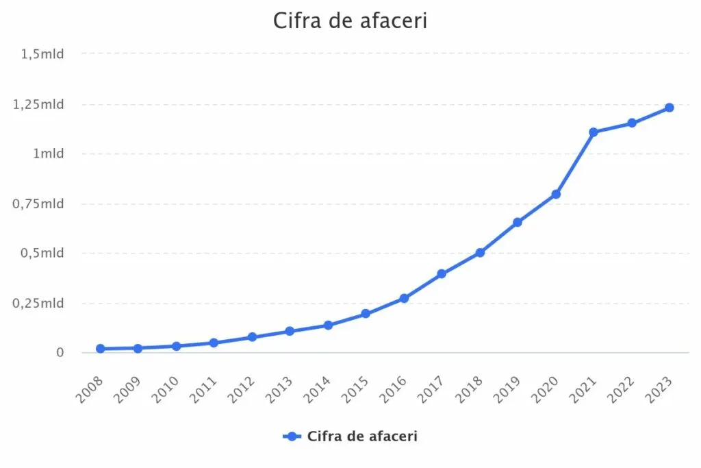 Cifra de afaceri de anul trecut, de 1,22 miliarde de lei, a fost cu 6% mai mare decât în anul precedent, 2022.