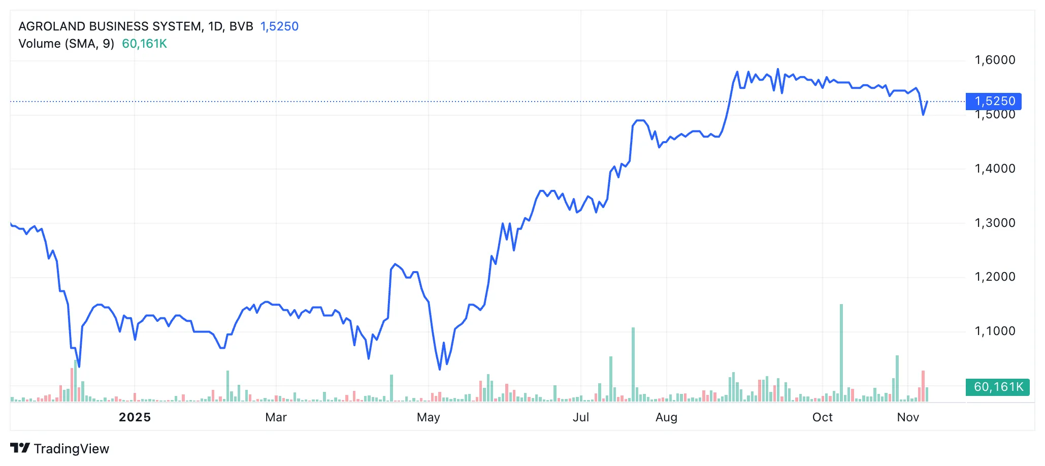 Agroland Business System a încheiat primele nouă luni din 2025 cu rezultate financiare solide, confirmând trendul ascendent al Grupului. La nivel consolidat, compania a raportat vânzări de 299 mil. lei, în creștere cu 13% față de perioada similară din 2024. Rezultatul operațional a urcat la 20,5 mil. lei (+56%), iar profitul net a crescut cu 65%, până la 9,5 mil. lei.