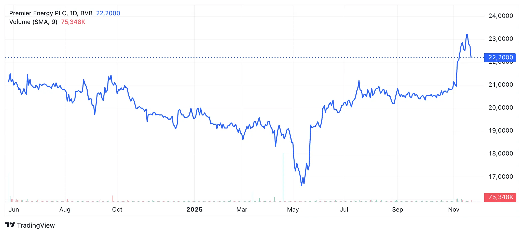 Premier Energy este evaluată de investitori la 2,8 miliarde de lei și este controlată în proporție de 71,25% de fondul Emma Alpha Holding, controlat de omul de afaceri ceh Jiri Smejc. Acțiunile PE s-au apreciat cu 16% de la începutul anului, pe fondul unor tranzacții de 232 mil. lei, arată datele BVB.