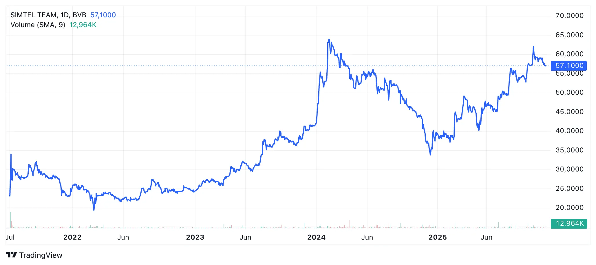 Simtel este evaluată de investitori la 464 mil. lei, iar cei mai mari acționari sunt Iulian Nedea (20,8%), Sergiu Bazarciuc (20,5%) și Radu Vilău (20,5%). Acțiunile SMTL se tranzacționează în creștere cu 45% de la începutul anului, pe fondul unor tranzacții de 55,7 mil. lei, arată datele BVB.