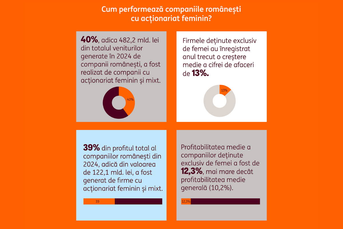 Apropo de profitabilitate, media națională a profitului este undeva la 10,2%, iar companiile cu acționariat feminin se duc spre 12,3%, ceea ce arată că doamnele fac afaceri mai profitabile. Cifrele ne demonstrează că un business bine făcut aduce după sine și profitul.