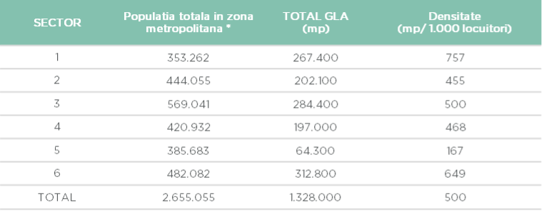 În ceea ce privește densitatea spațiilor de retail la nivel național, aceasta a crescut la 248 metri pătrați/ 1.000 locuitori, suprafață care se plasează printre cele mai reduse din Europa.