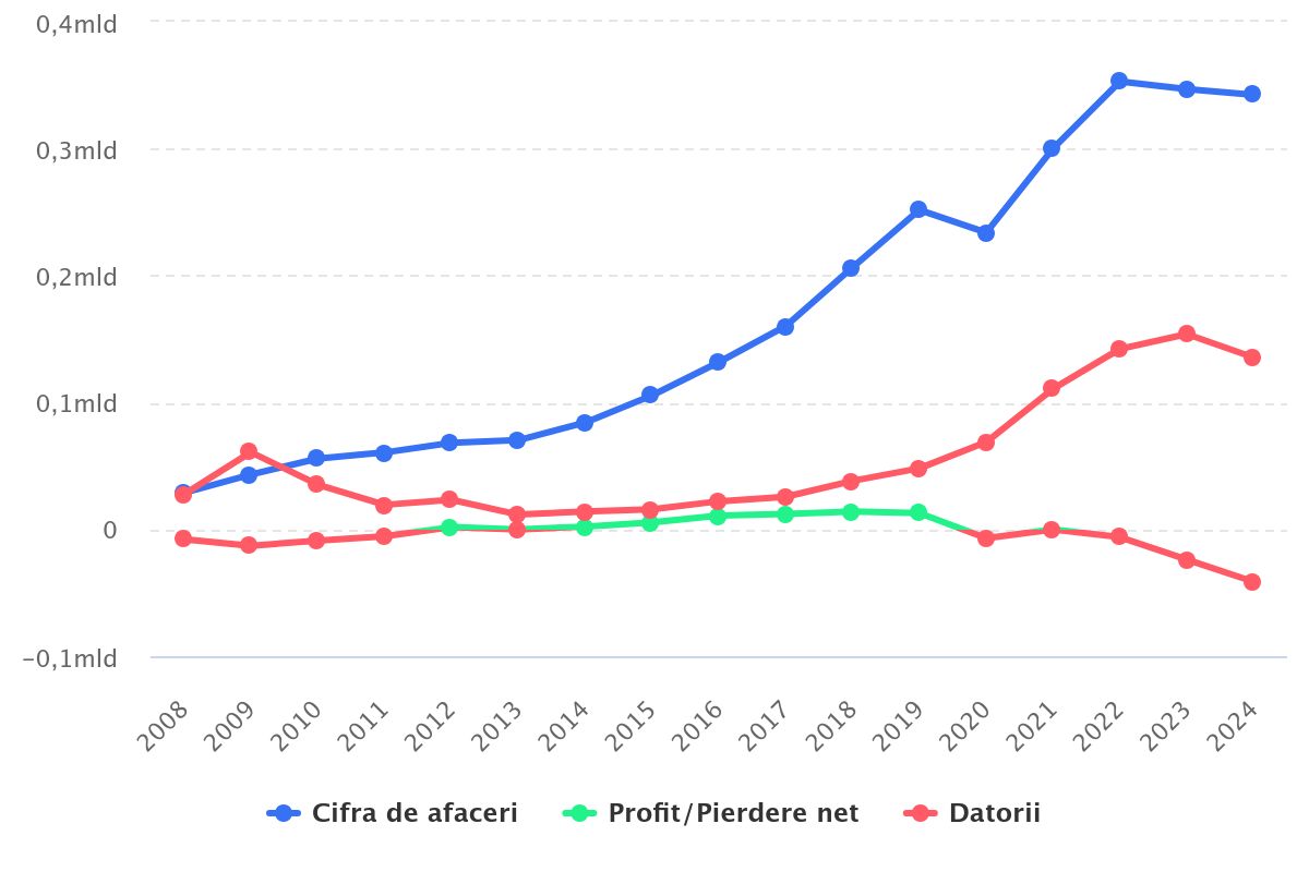 Problema nu este însă volumul vânzărilor, ci profitabilitatea. Pierderea netă a urcat la 41,3 milioane lei în 2024, față de 23,8 milioane lei în 2023 – o deteriorare de aproximativ 74%.