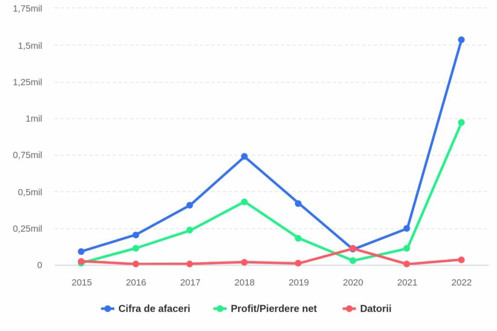 Camy-Maria Art SRL a raportat în 2022 o cifră de afaceri de 1,53 milioane de lei și un profit de 970.000 de lei. Firma a avut un singur angajat. Pentru anul trecut, Fiscul încă nu a publicat rezultatele societății.