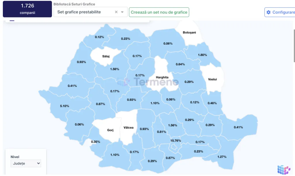 Harta pe județe a firmelor cu acționariat iranian.