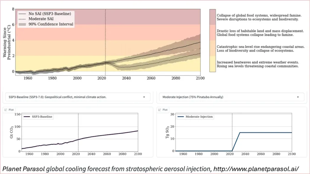 Astfel, se poate modela aceste efecte și evalua mai bine dacă SAI ar putea fi o opțiune viabilă pentru combaterea încălzirii globale. Planet Parasol a fost realizat de o echipă ce include oameni de știință de la universități prestigioase. Instrumentul, dezvoltat în parteneriat cu cercetători de la Cornell, Universitatea din California, San Diego și alte instituții, evidențiază de asemenea cum inteligența artificială ar putea contribui la avansarea înțelegerii noastre asupra geoingineriei solare.