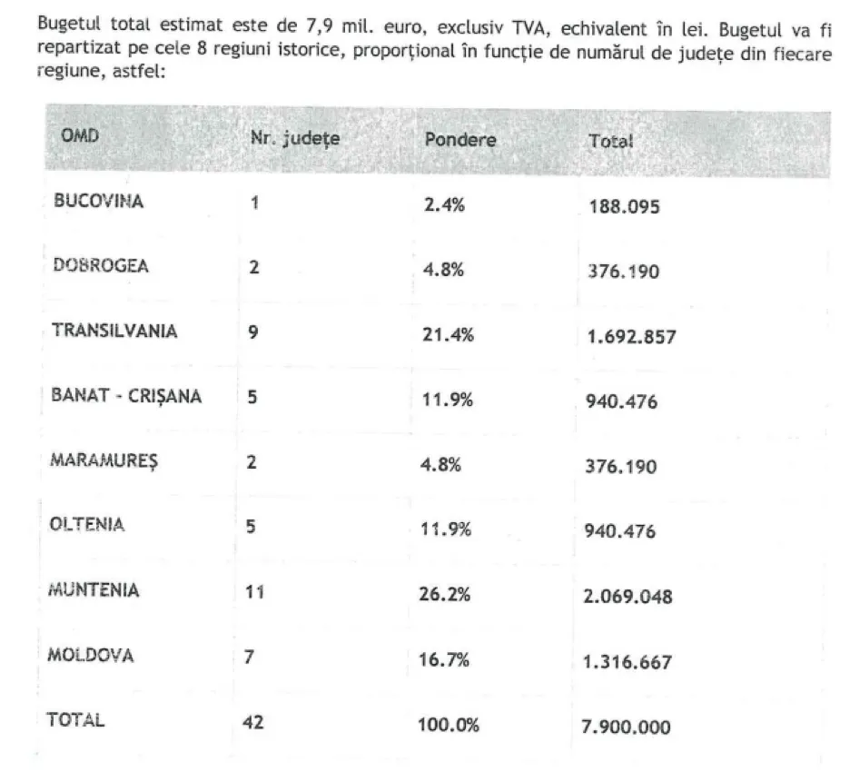 Bugetul total estimat pentru acest program se ridică la 7,9 milioane de euro.