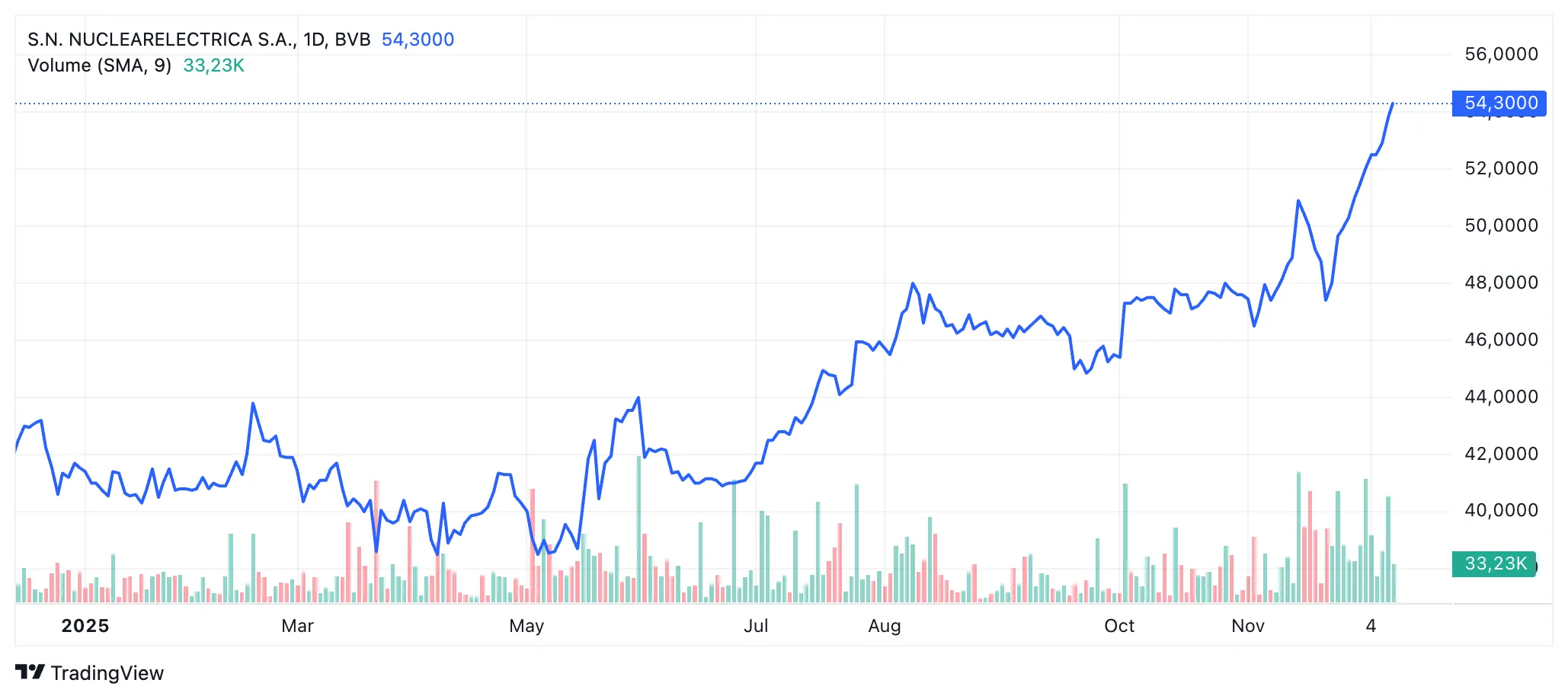 Nuclearelectrica este evaluată de investitori la 16,2 mld. lei și este controlată în proporție de 82,5% de statul român, prin Ministerul Energiei. Acțiunile SNN înregistrează o creștere de 30,9% de la începutul anului, pe fondul unor tranzacții de peste 300 mil. lei, arată datele BVB.