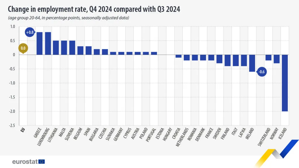 Aceste date provin din statisticile pieței muncii pentru trimestrul al patrulea din 2024, publicate de Eurostat.