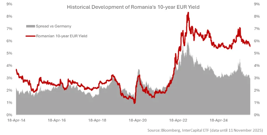 Similar altor țări în curs de dezvoltare din Uniunea Europeană, România a fost mult timp un loc interesant pentru investitorii dispuși să își asume un risc suplimentar în schimbul unor randamente mai mari decât cele din zona euro centrală, însă în ultimii ani țara s-a abătut de la tendința observată în cazul altor state comparabile.