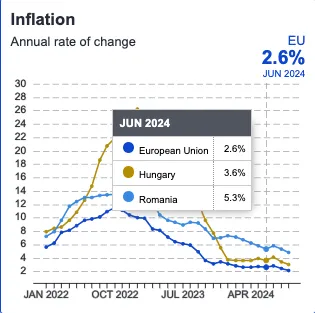 Ungaria are o inflație mai mică în puncte procentuale cu 1,7 față de România.