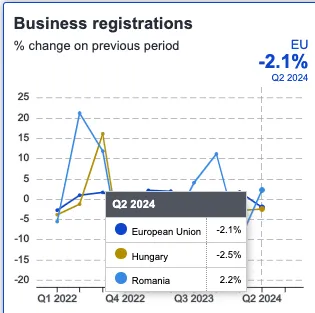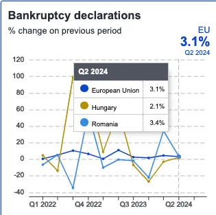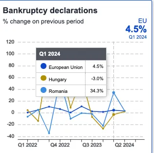 De asemenea, din punct de vedere al siguranței afacerilor, Ungaria stă mult mai bine. Numărul falimentelor și al insolvențelor este mult mai mic.