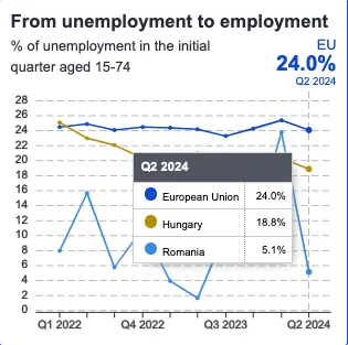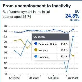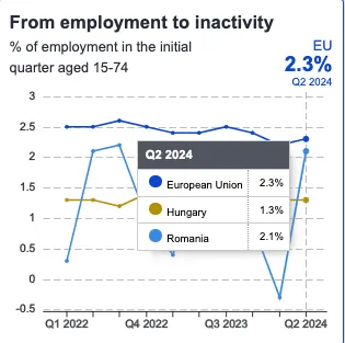 Ungaria are un procent mai mic cu 0,7 puncte procentuale ale cazurilor de persoane care trec din câmpul muncii într-o stare de inactivitate.