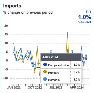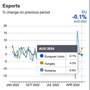 Ungaria mai domină România și din punct de vedere comercial. Statul vecin importă mai puțin decât România și exportă mai mult.