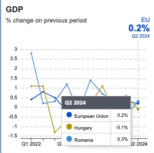 România care a avut o creștere a PIB-ului propriu, față de Ungaria unde s-a înregistrat o scădere.