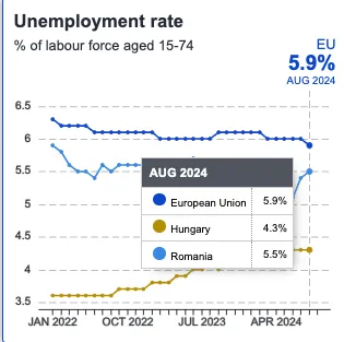 Ungaria are o rată a șomajului cu 1,2% procente mai mică față de cea din România.