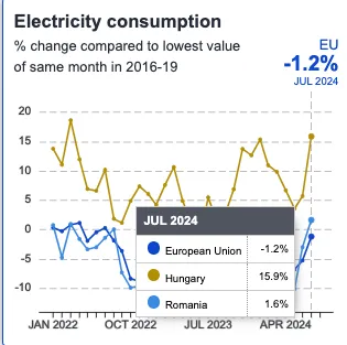 România are o creștere mai mică a consumului de energie față de Ungaria.
