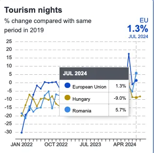 Surprinzător, România stă mai bine și din punct de vedere turistic, în ceea ce privește creșterea numărului de nopți de cazare. Și mai surprinzător, poate, este faptul că aerul din România are o calitate mai bună.