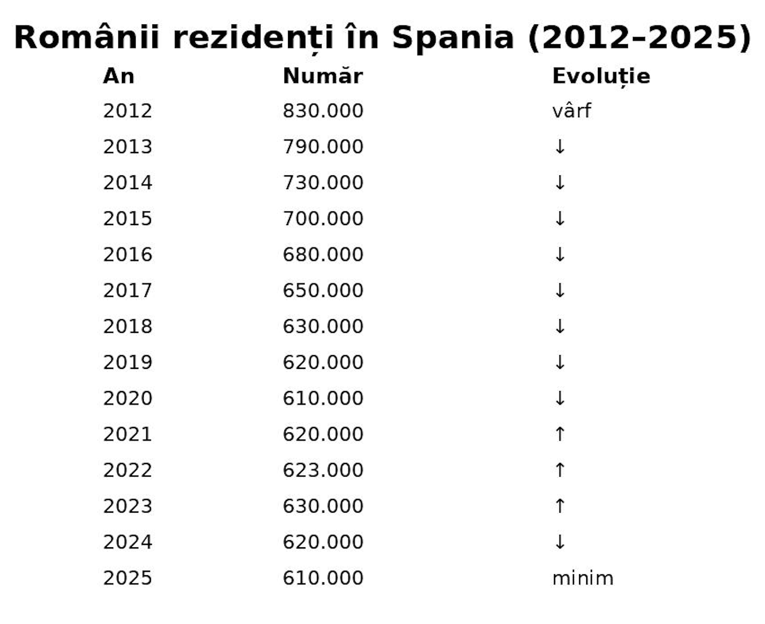 Migrația românilor în Spania a evoluat de la un fenomen economic de masă la o comunitate stabilă și integrată. Astăzi, deși nu mai este în expansiune, diaspora românească rămâne una dintre cele mai importante din UE.