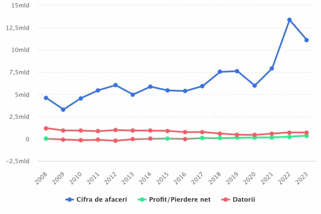 Lukoil România SRL din București a raportat pentru 2023 o cifră de afaceri de 11,1 miliarde de lei, cu 17% mai puțin decât anul precedent. În 2022, cifra de afaceri a fost de aproape 13,4 miliarde de lei. S-a înregistrat astfel o scădere de aproape 2,3 miliarde de lei de la un an la altul, între 2023 și 2022.