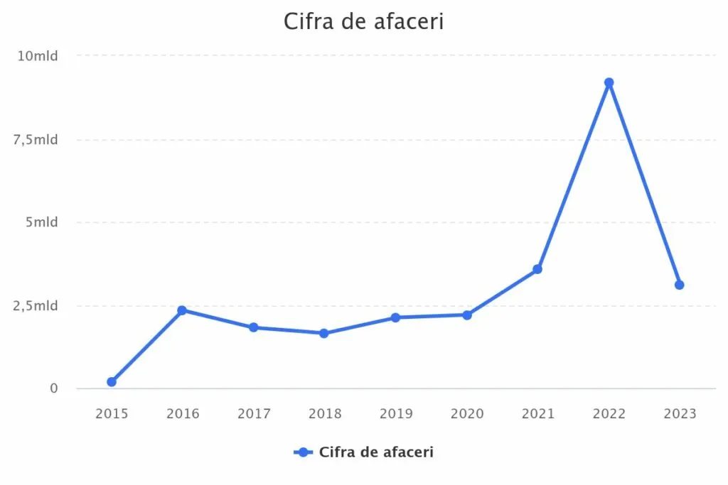 Tinmar Energy SA, cu sediul central în București, a raportat pentru anul 2023 o cifră de afaceri de trei ori mai mică decât în 2022. Anul trecut, cifra de afaceri a traderului de energie a ajuns la 3,11 miliarde de lei. În anul precedent, în 2022, cifra de afaceri a atins un record pentru Tinmar și s-a ridicat la 9 miliarde de lei.