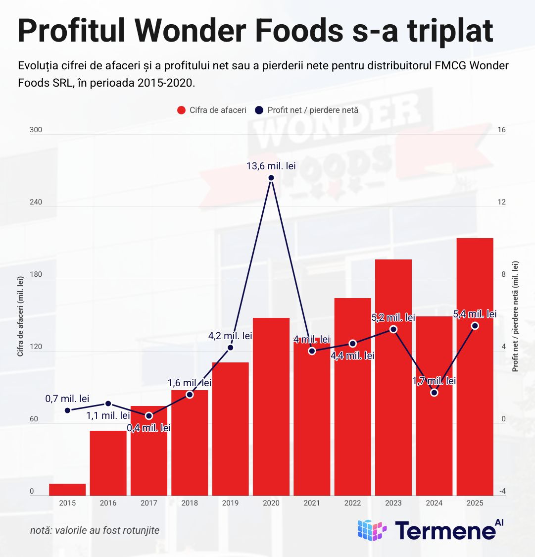 Mai exact, Wonder Foods SRL (RO33927977) a avut un profit net de 5,4 mil. lei în 2025, în creștere cu 221% față de anul 2024. Acesta este al doilea cel mai ridicat nivel al profitului, după cel de 13,6 mil. lei din 2020.
